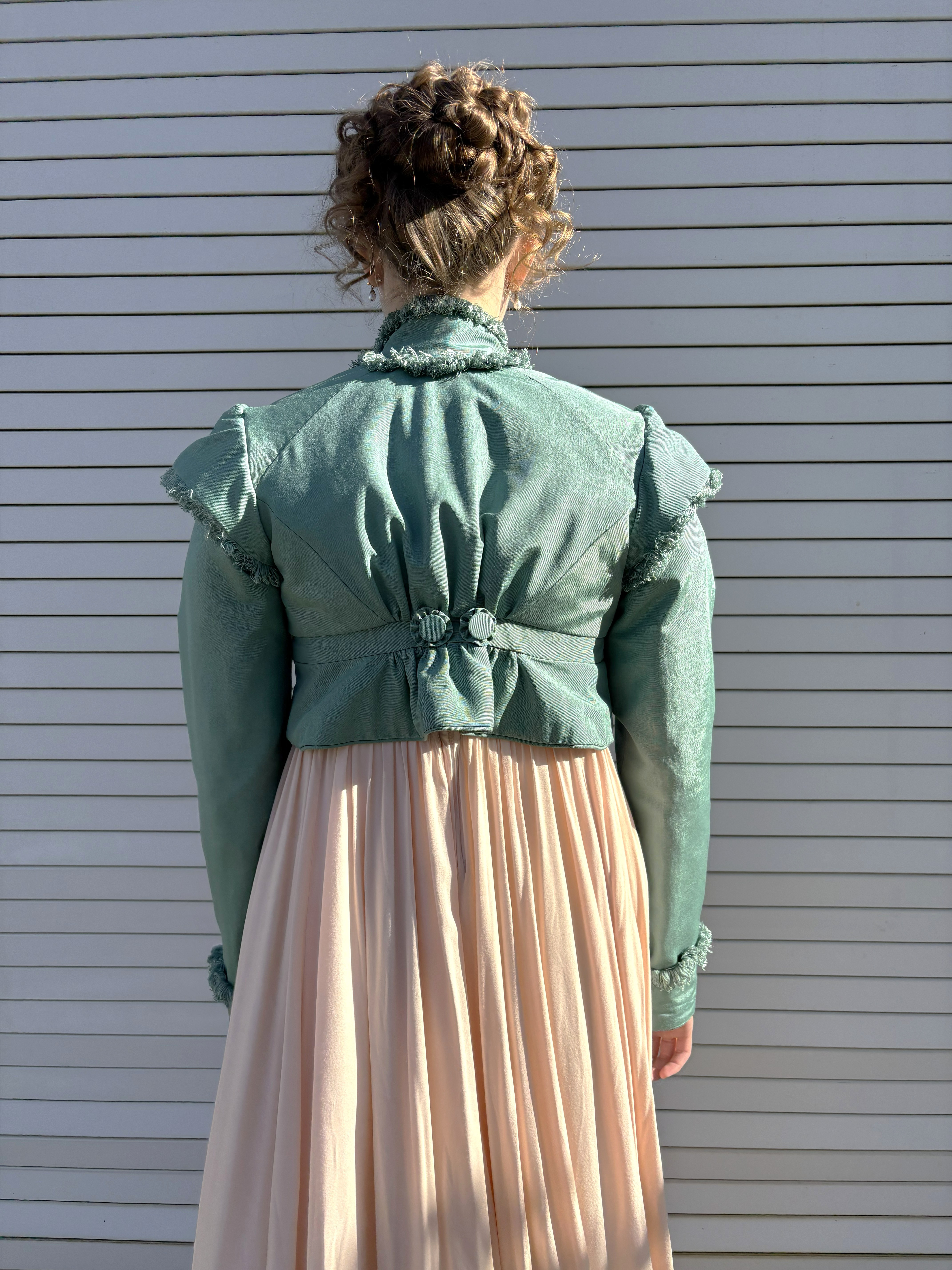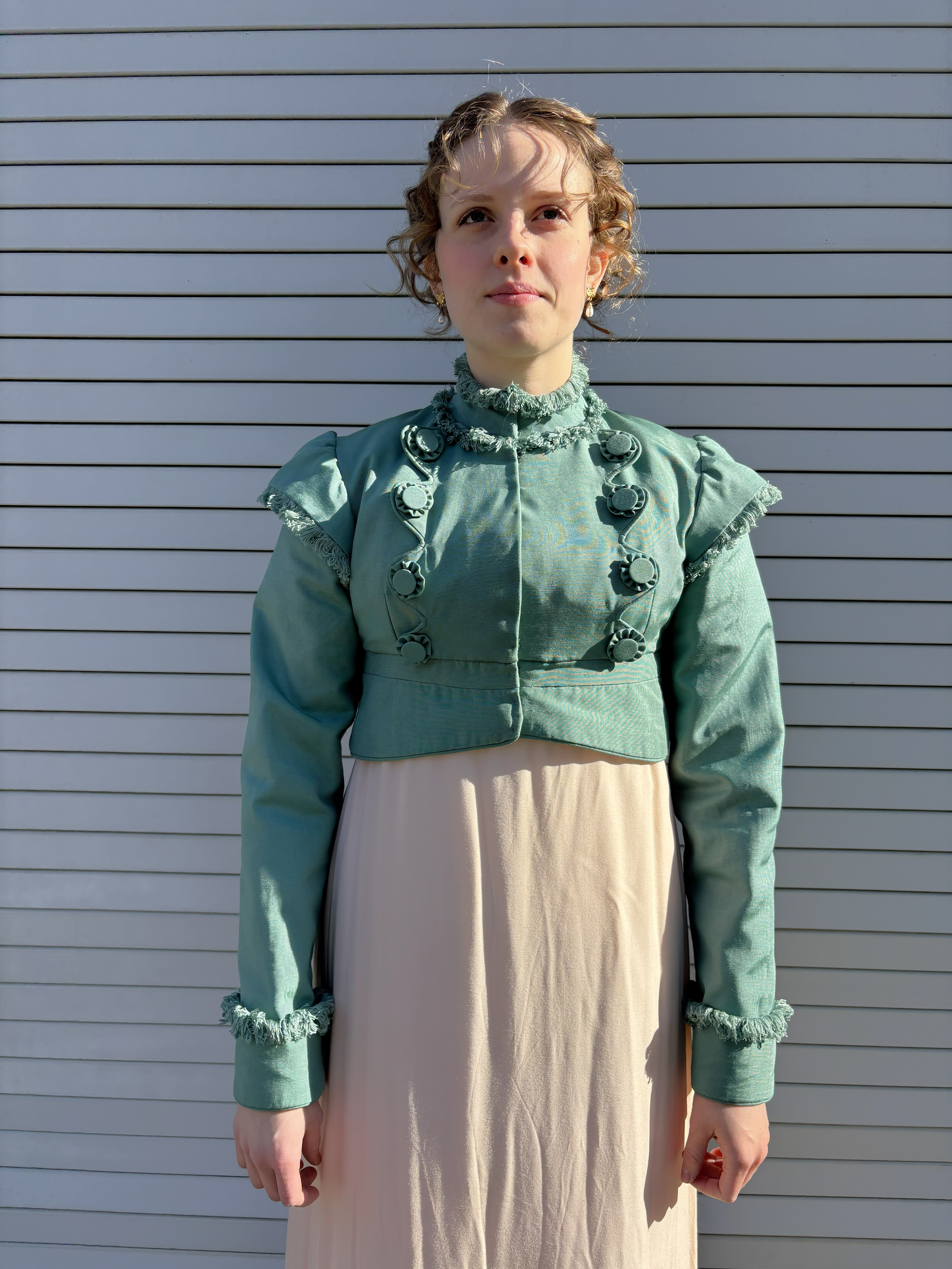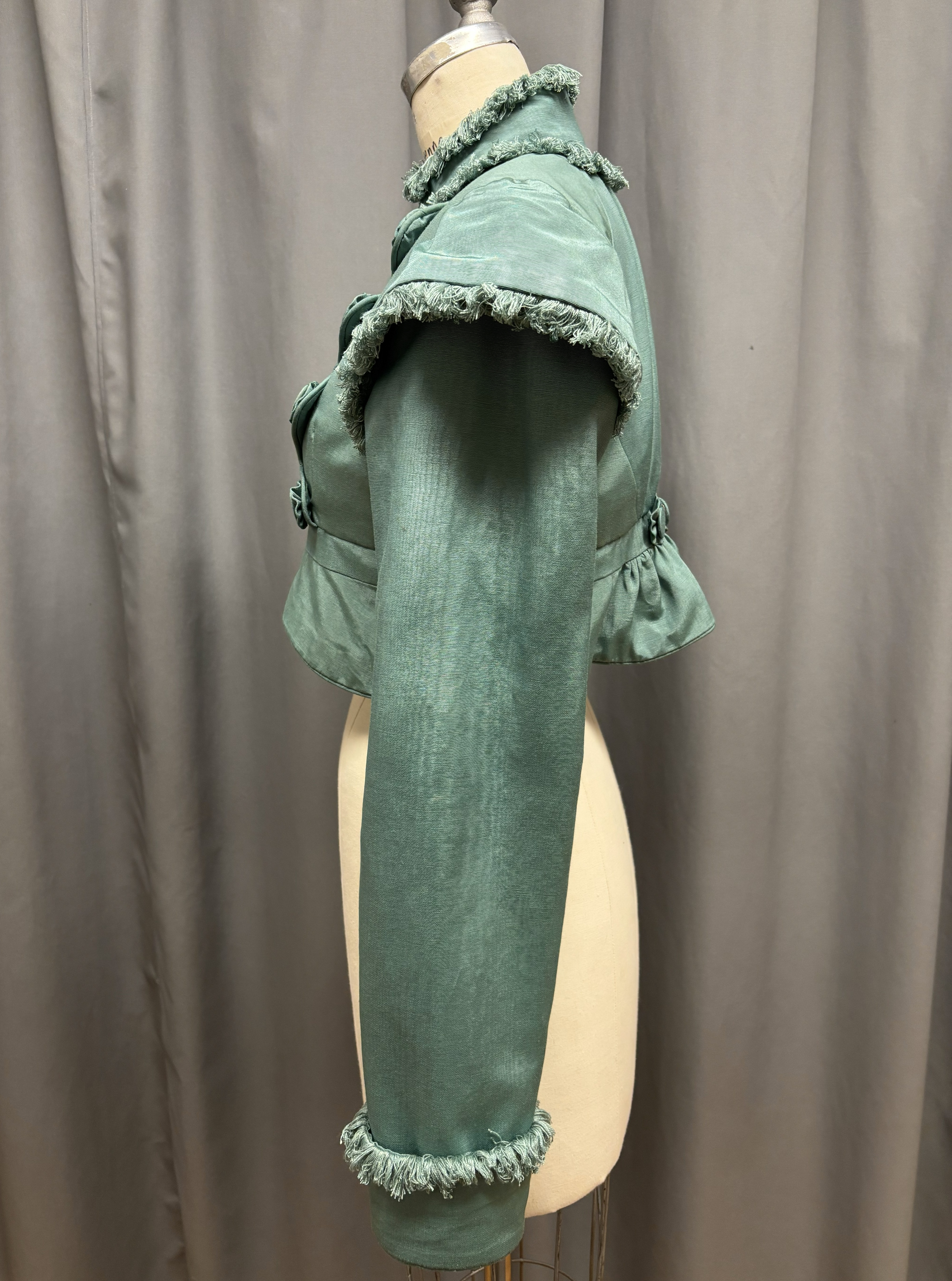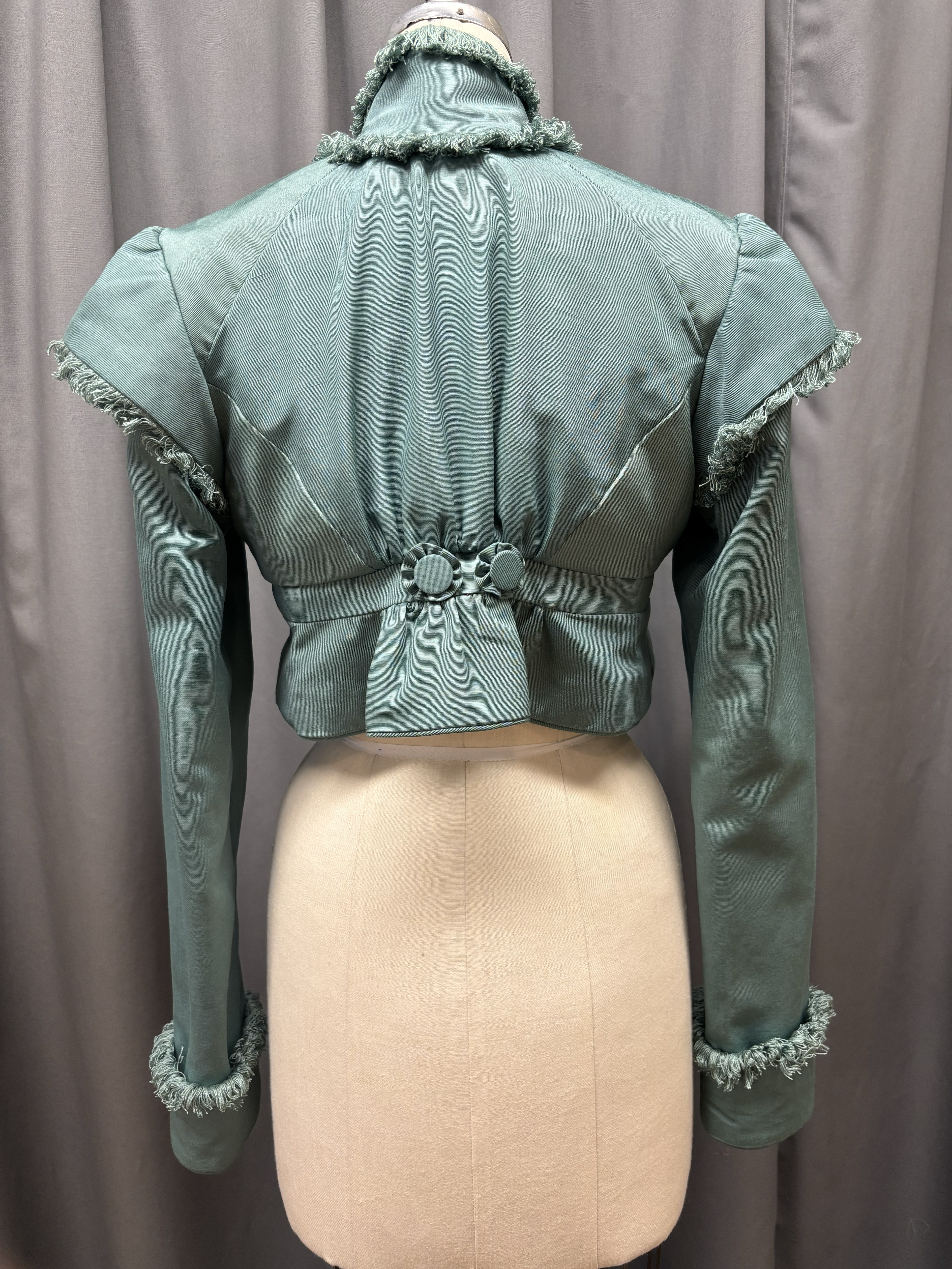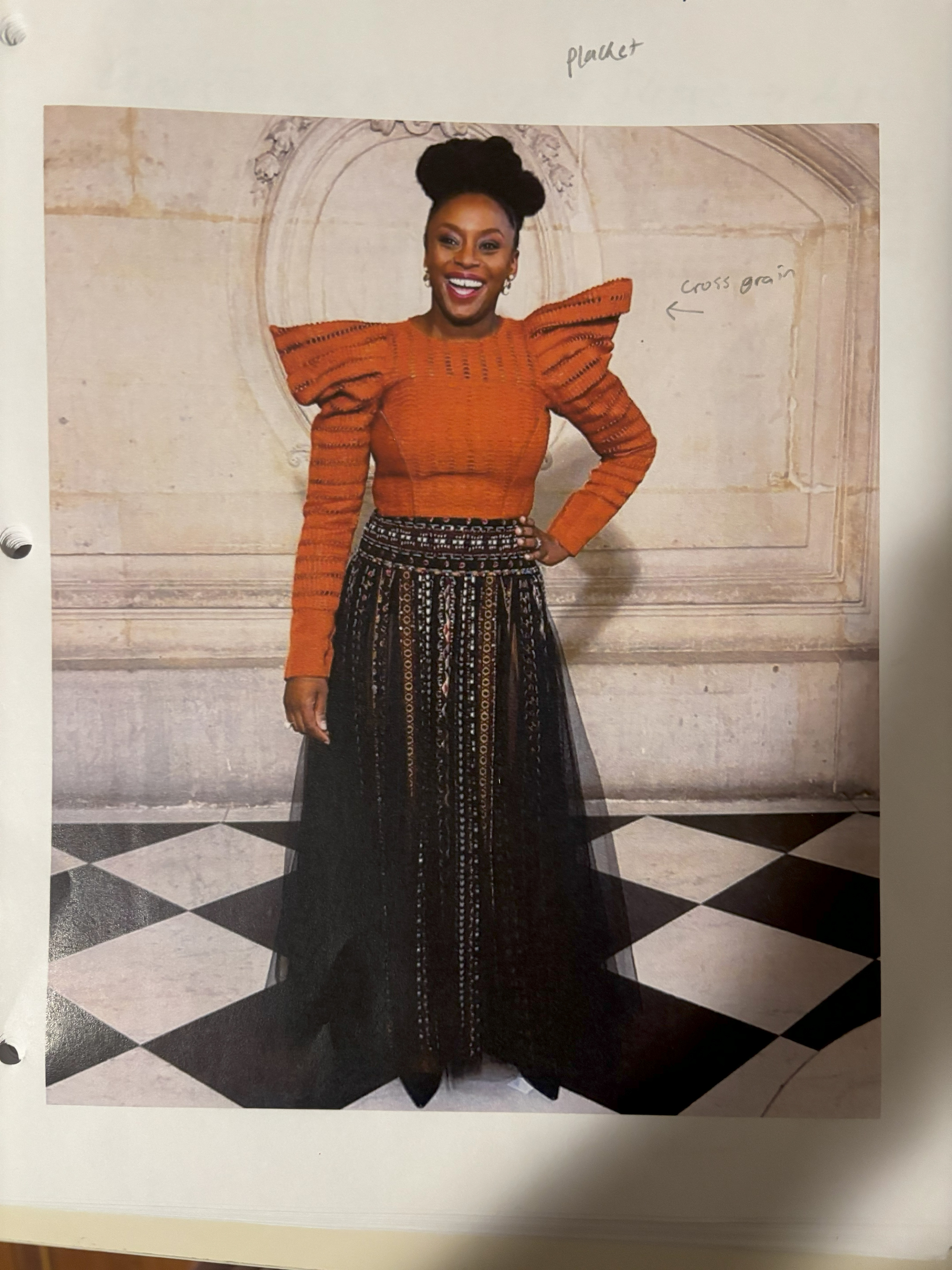 This was an exercise in patterning sleeves, and the goal was to match the picture as best as we could. I ended up patterning the sleeve similar to a leg of mutton, but the top gets sewn together at the top to make the point before it’s set in.