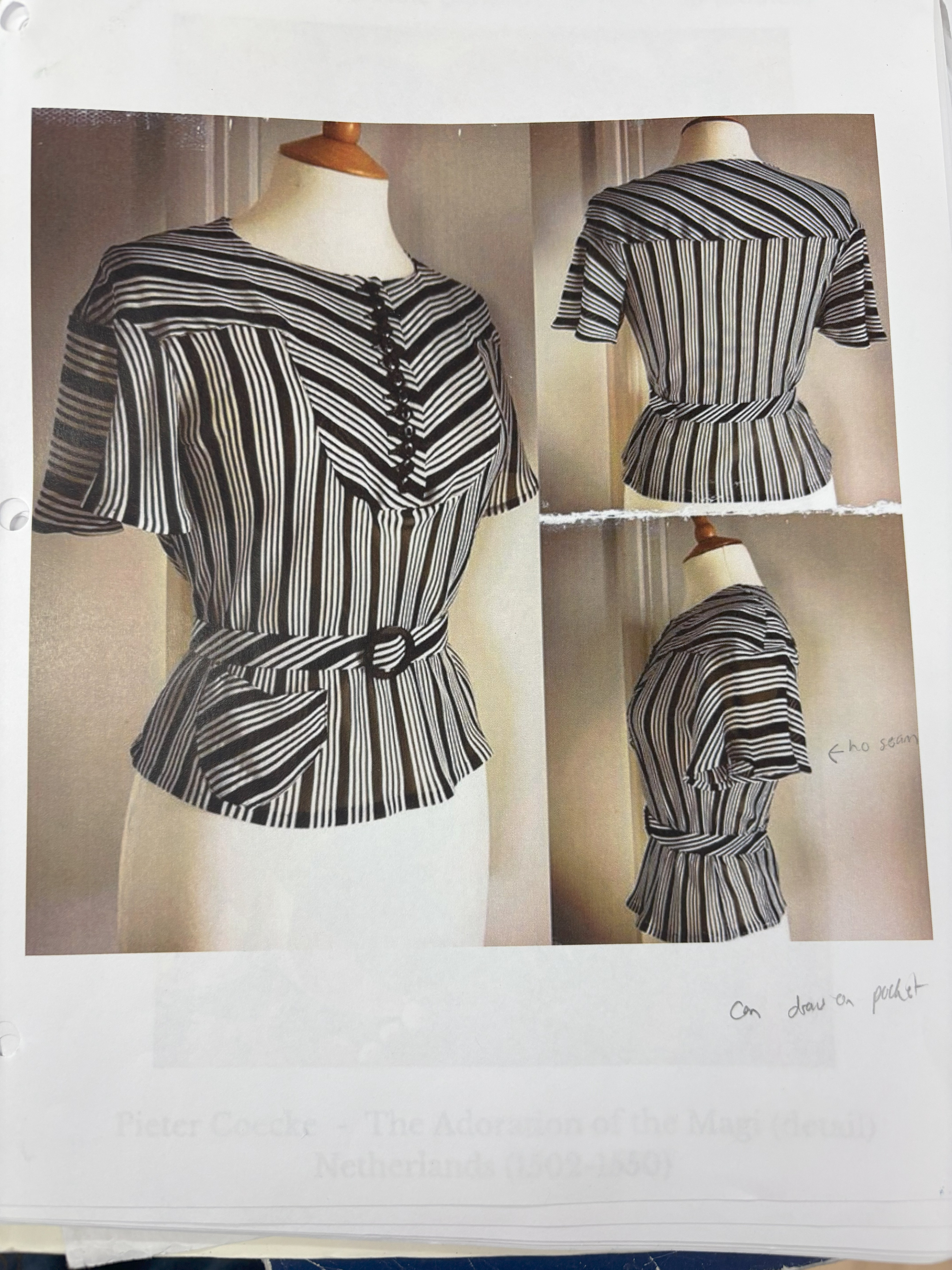 UNC School of the Arts, Costume Tech 3, garment recreation, Draper and Stitcher