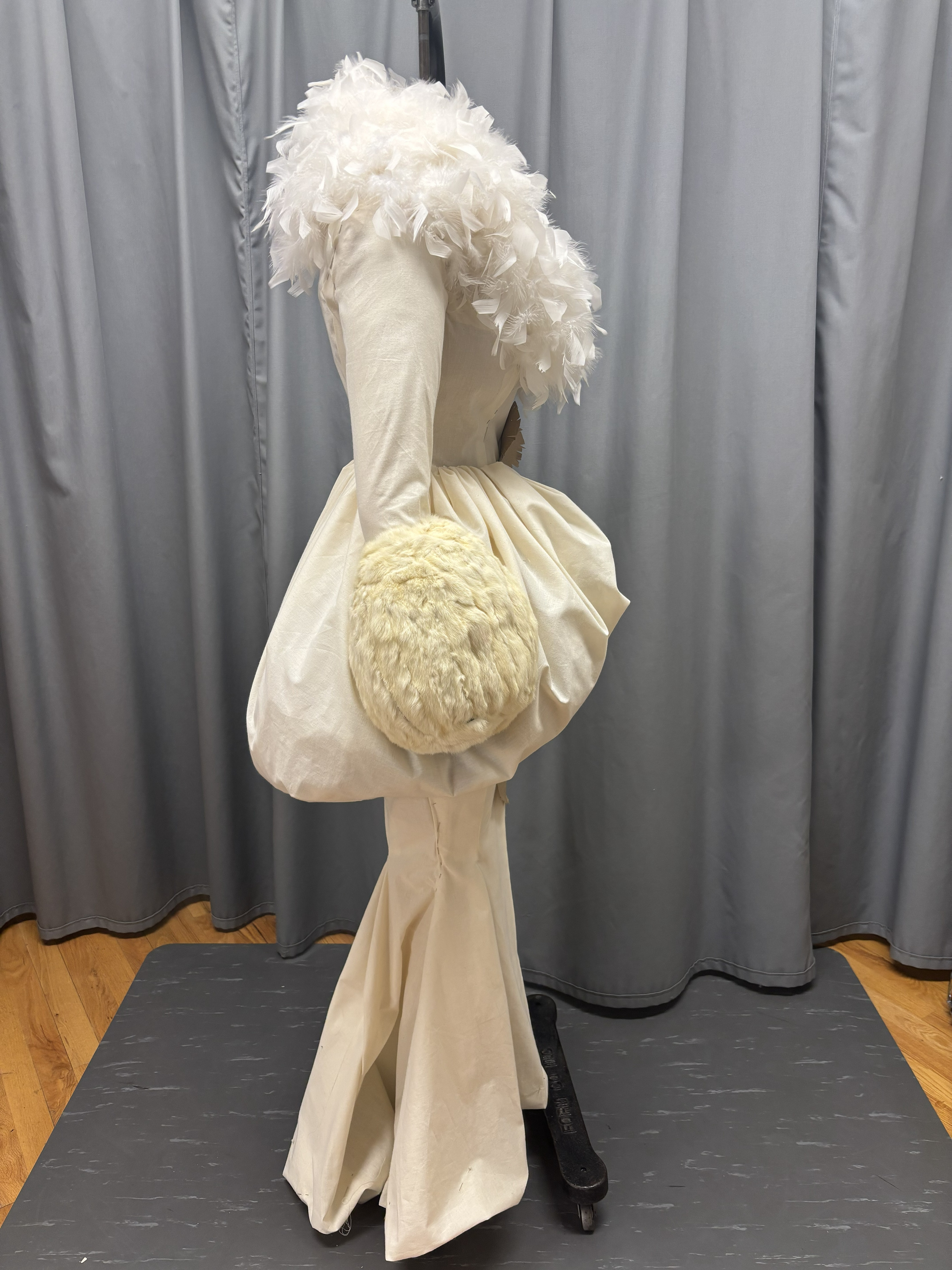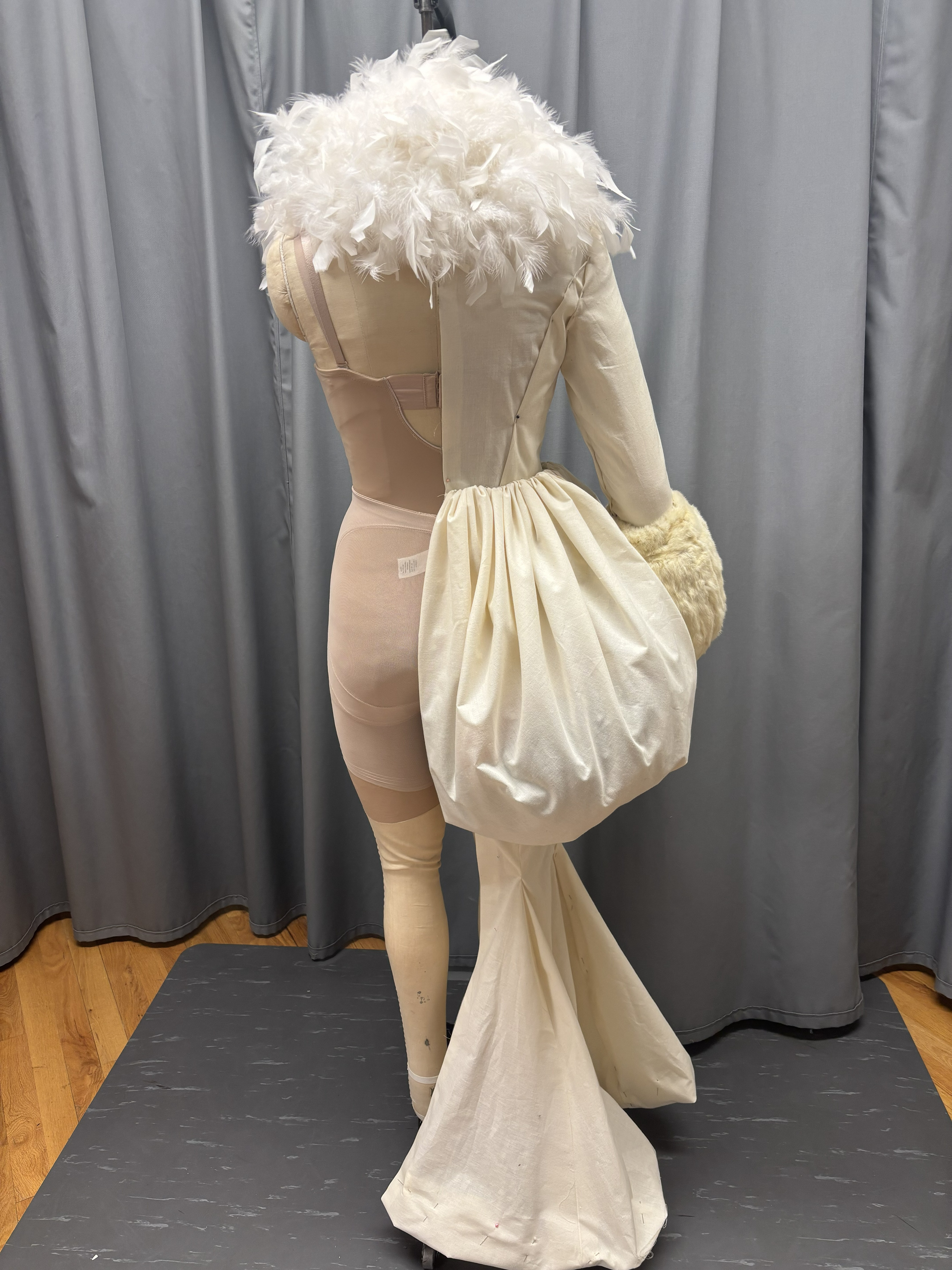 In a class period, we are given 3 hours to drape the image, and we were told to do the full bustle rather than just half of it, like the rest of the drape.
