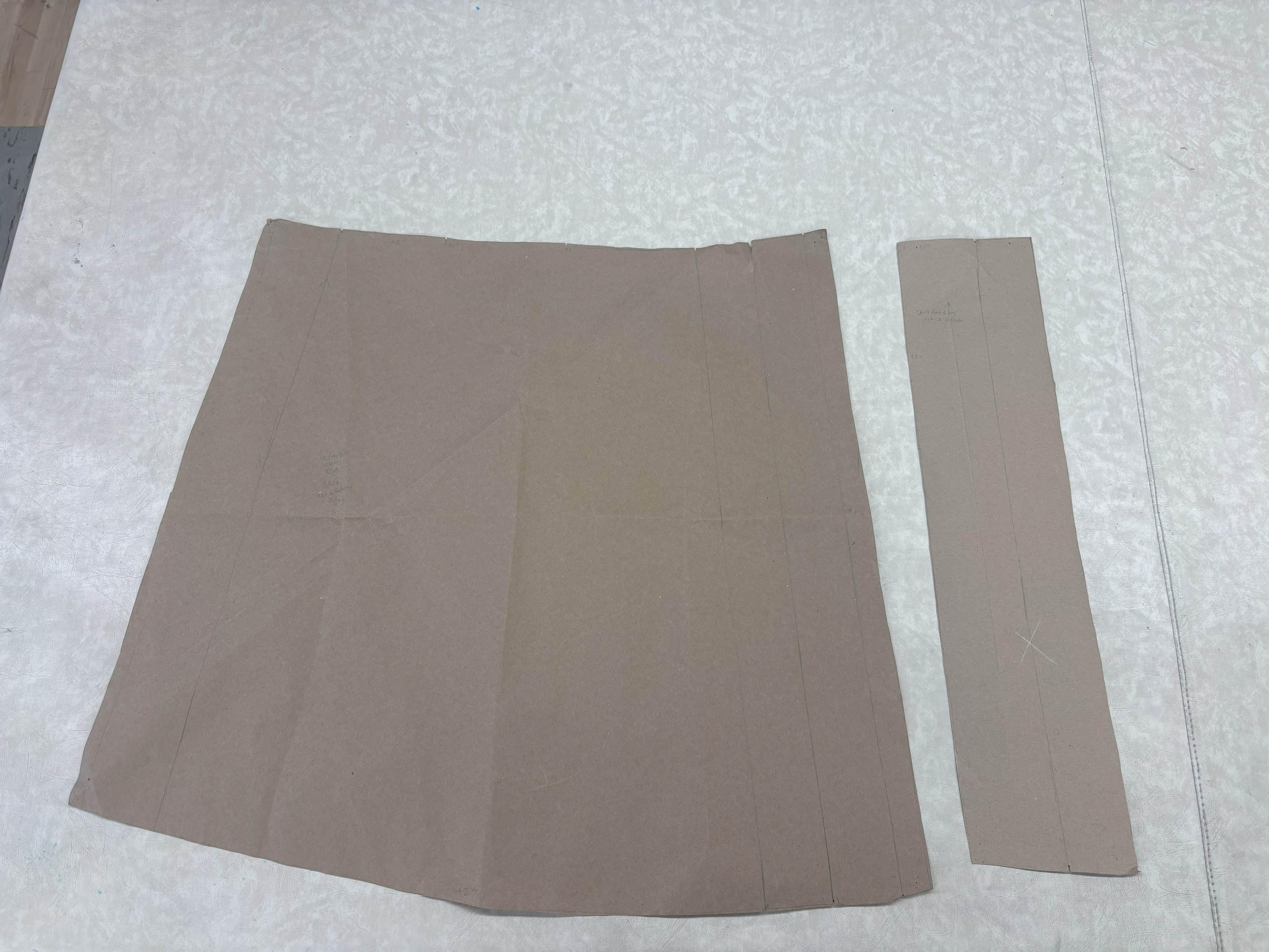 For this project, a drawing of the pattern was given for a trumpet skirt from a book and the assignment was to use radial projection to get it to the correct size for the half-scale mannequin