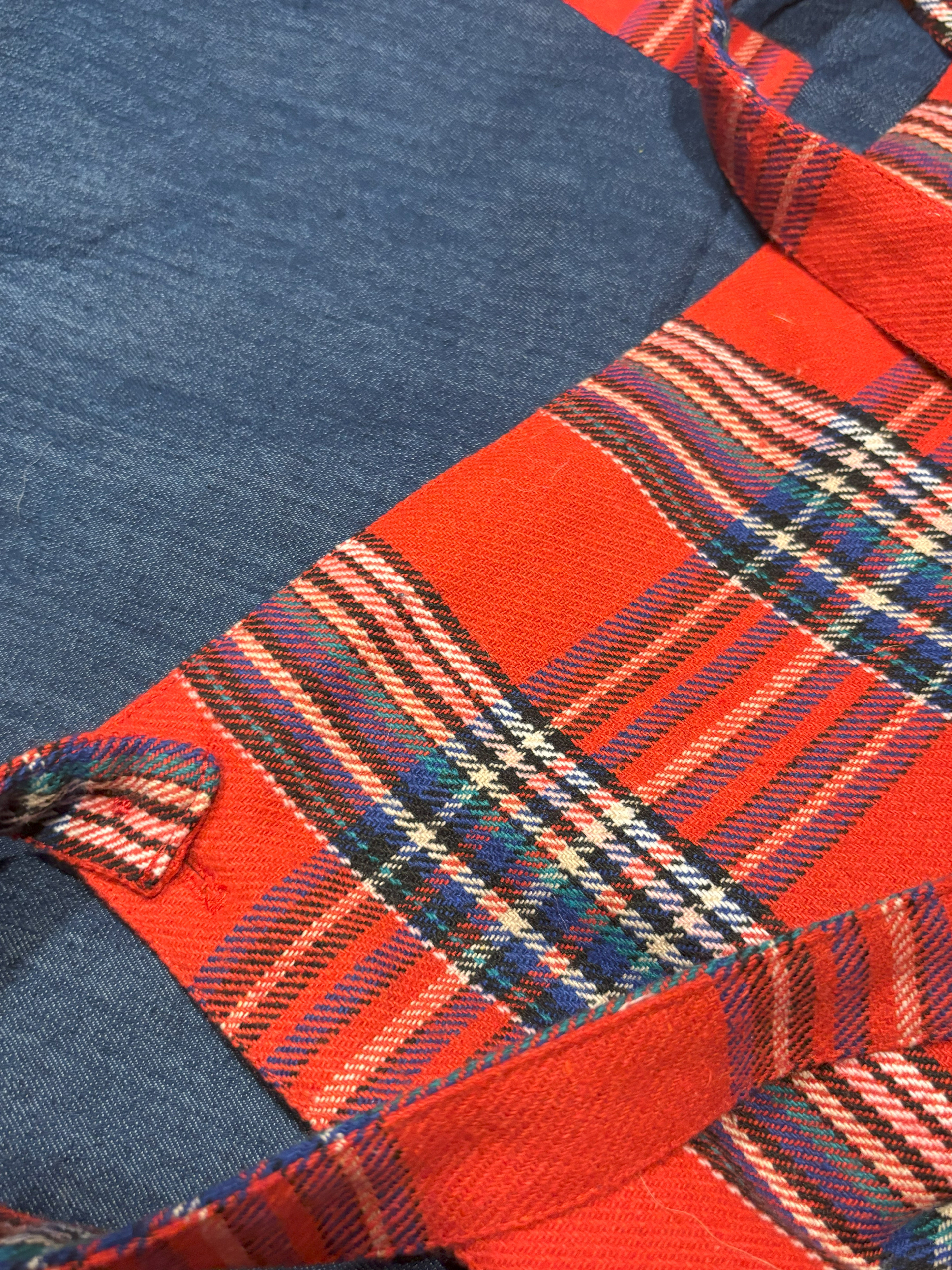 I was inspired by the band The Bay City Rollers to create a skirt version of the typical pants they wore for their performances. I was able to pattern it quickly; the real difficulty was making sure things were pattern-matched when so little of the pattern is showing.