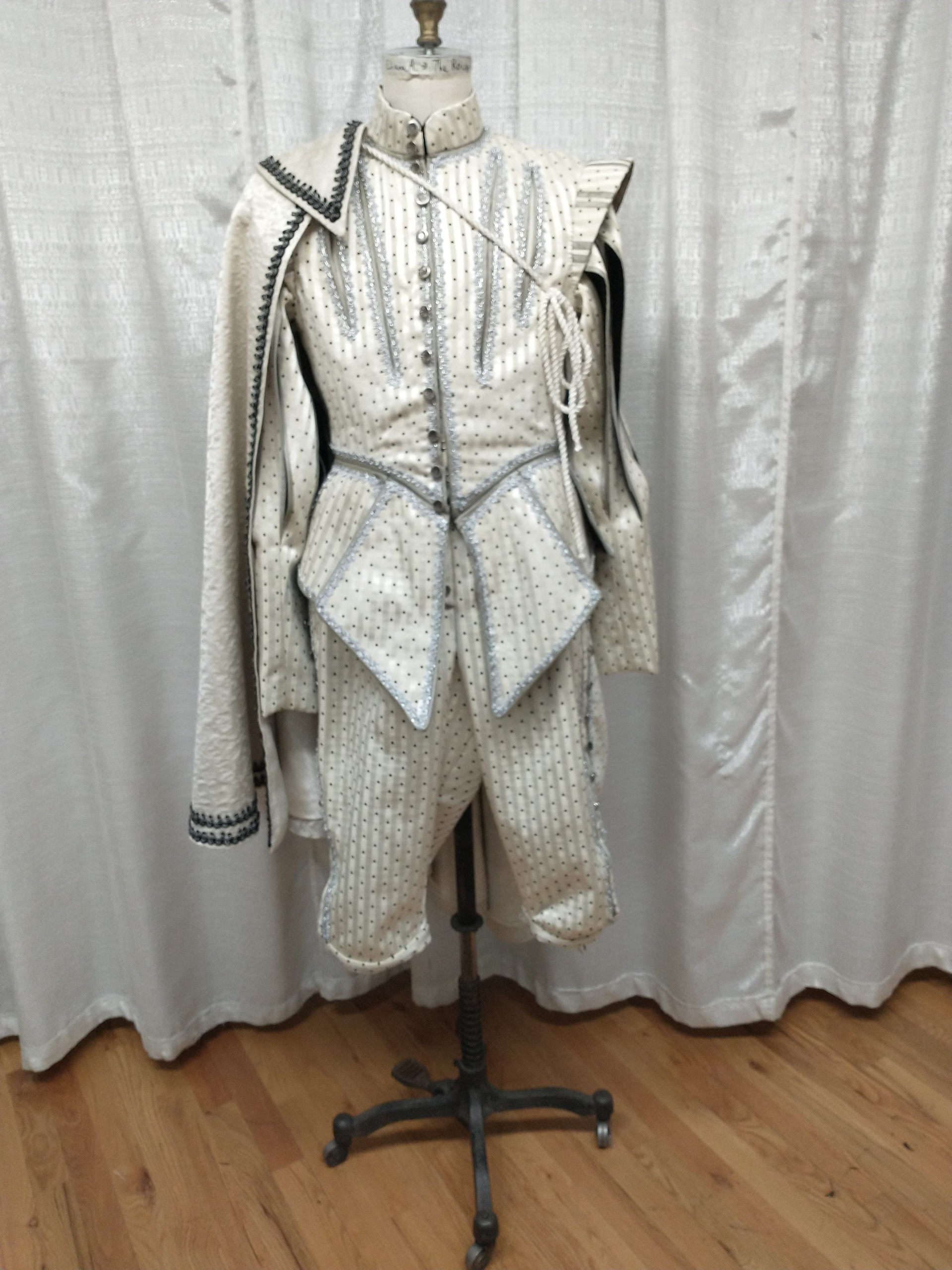 I worked on sewing the patches on the suits and sewed the pleated belt. I also worked with cutting out and sewing on the chiffon strips of fabric for the river souls. Some of the strips were cut on the bias while others were cut on the straight of grain.